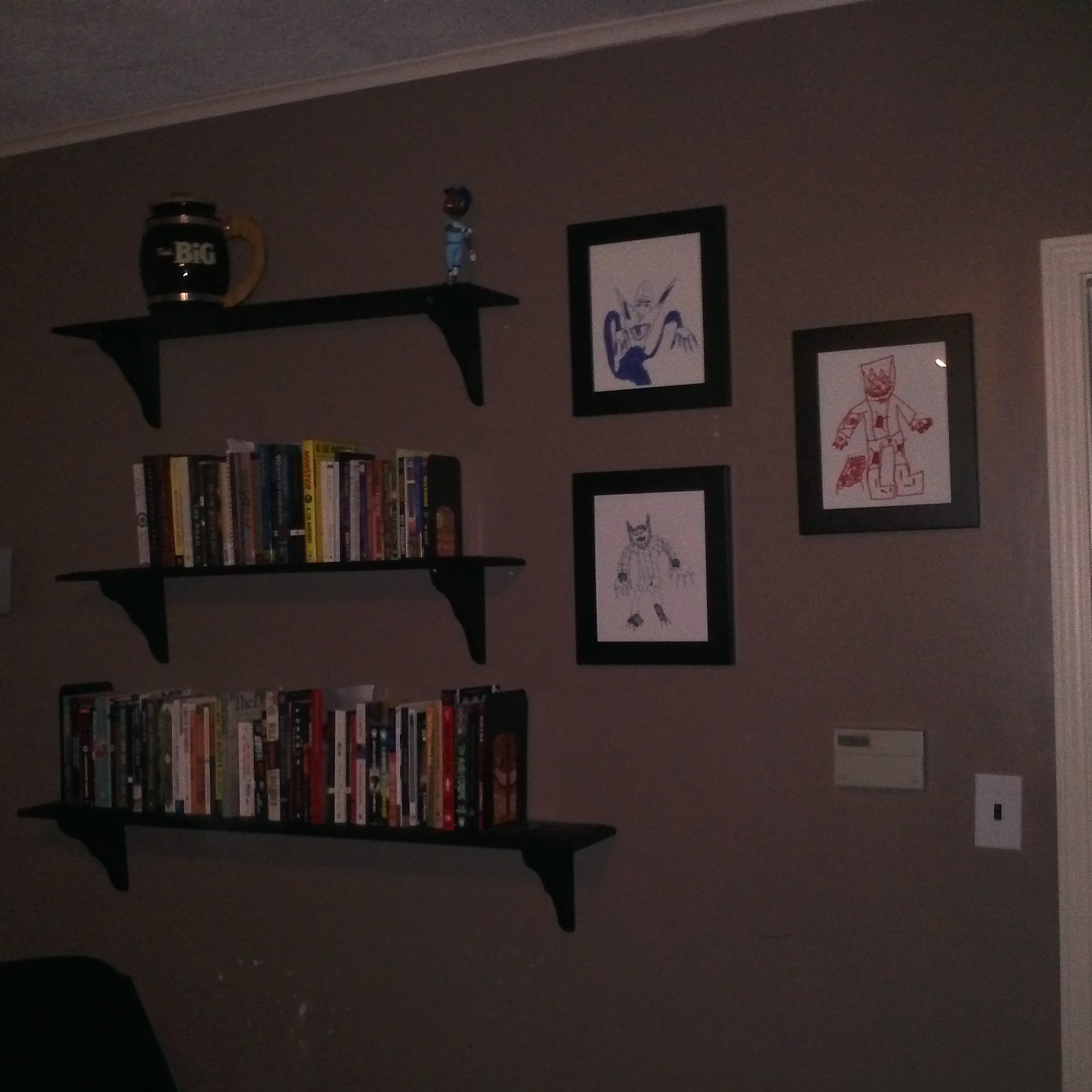 But I realize now that my choices were perfect. Not only did I do something cool by purchasing these, but now I have my monsters, I have a good story to tell about how I ended up with these kid’s drawings framed on my wall. Oddly enough, these actually represent my two friends and I.